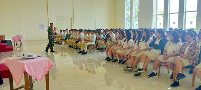 Untuk membangun karakter kebangsaan di kalangan generasi muda, Danramil 0815/09 Mojosari, Kapten Inf Benny Irawan, A.Md., menjadi narasumber utama dalam kegiatan Masa Pengenalan Lingkungan Sekolah (MPLS) di SMA Taruna Nusa Harapan, Kota Mojokerto, Selasa (15/7).