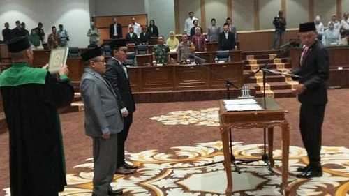 Ketua DPRD Bojonegoro, Abdulloh Umar, memandu langsung pengucapan sumpah dan janji kedua anggota dewan baru tersebut, dilanjutkan dengan penandatanganan Berita Acara Pengambilan Sumpah dan Pakta Integritas, serta penyematan pin lambang DPRD.