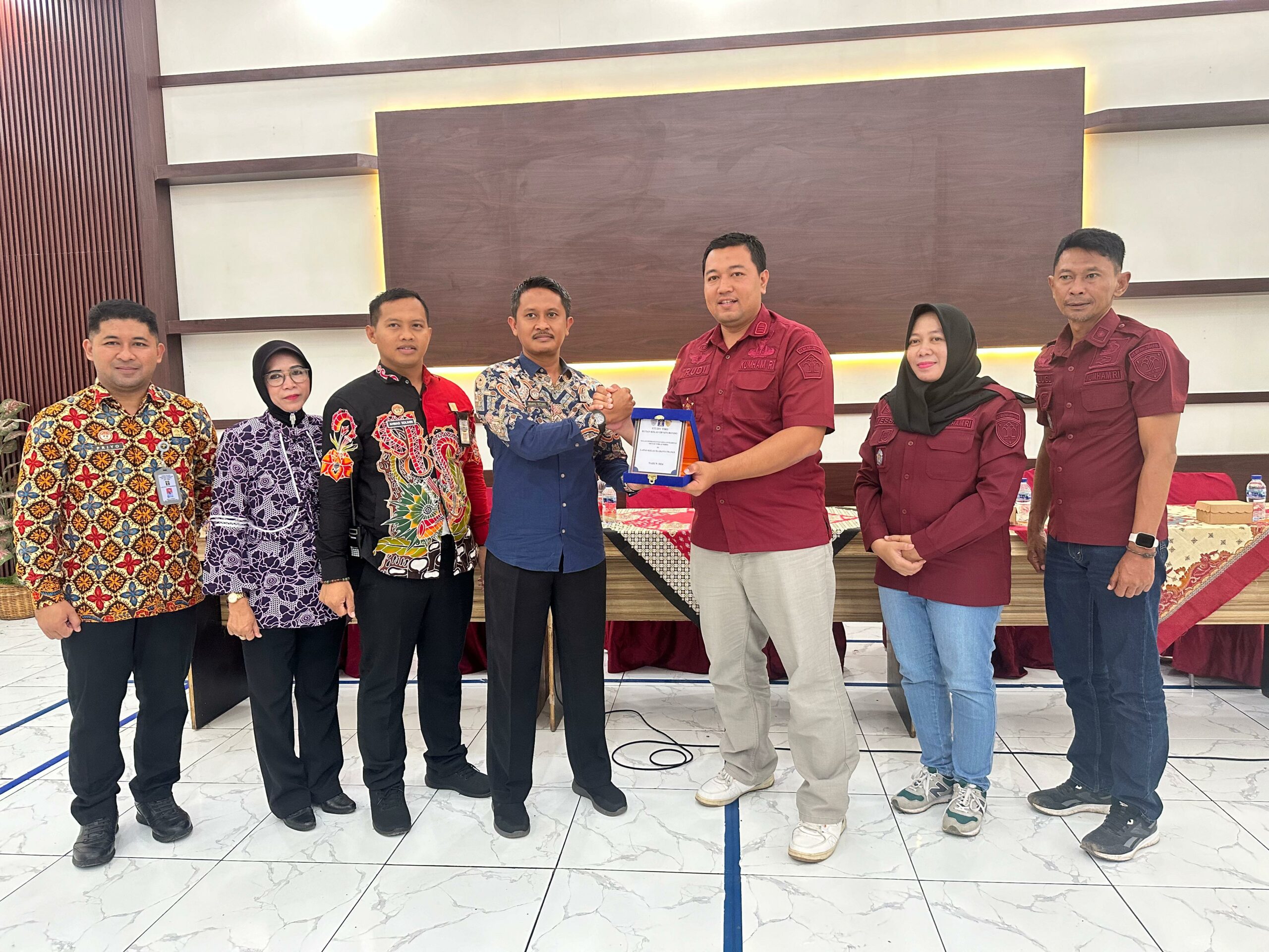 Kepala Rutan Kelas IIB Situbondo Rudi Kristawan bertukar cinderamata saat diterima Kasi Bimnadik Wahyu Tetuka beserta jajaran pejabat struktural dan tim Zona Integritas Lapas Banyuwangi, Sabtu (13/7).