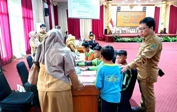 Puluhan pelajar sekolah rakyat (SR) di Kota Pasuruan mengikuti pemeriksaan kesehatan gratis di Gedung Gradika Bhakti Praja Pemkot Pasuruan, Senin (14/7). Pemeriksaan itu merupakan program wajib yang harus dilaksanakan oleh seluruh daerah di Indonesia.