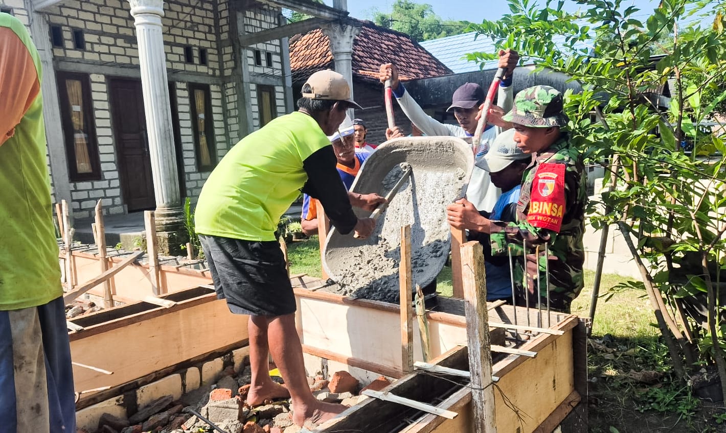 Koramil 09/Sumberrejo Kodim 0813 Bojonegoro bersama warga Dusun Nglandean, Desa Margoagung, Kecamatan Sumberrejo, melaksanakan kegiatan karya bakti pengecoran pondasi Musholla Baitul Mukminin, Jumat (9/5).