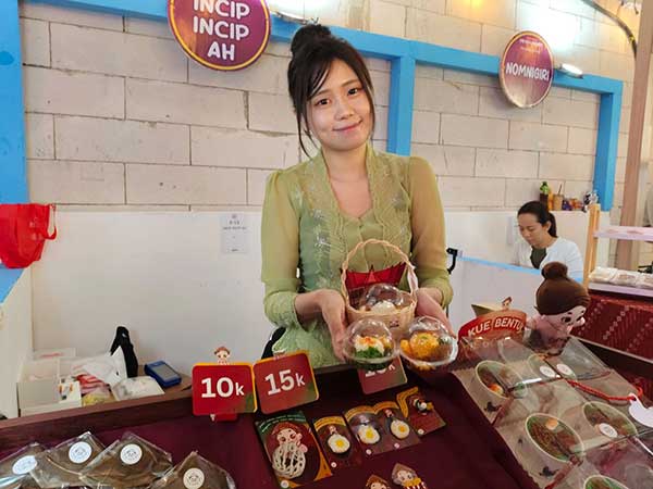 “Aku kemas secara modern biar orang tertarik dan anak kecil juga suka. Ada juga merchandise gantungan kunci dan buku edukasi makanan seperti nasi kuning dan nasi padang,” jelas Kally.