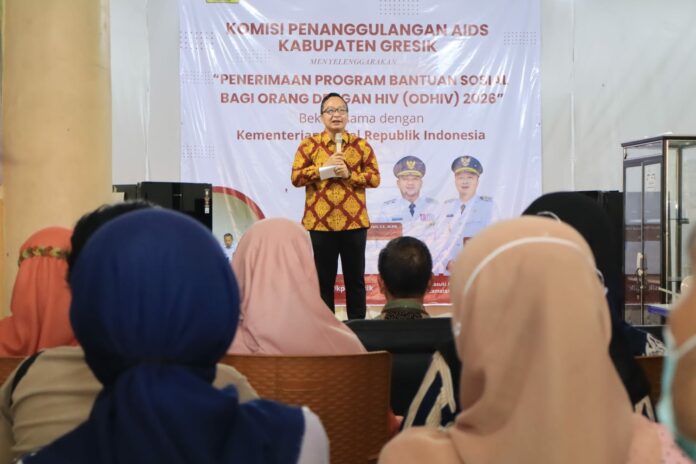 Hal itu disampaikan Wabup Alif saat menghadiri kegiatan penerimaan Program Bantuan Sosial bagi orang dengan HIV tahun 2026 di Kabupaten Gresik, Kamis (12/03).