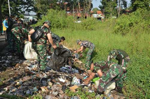 Wujud kepedulian terhadap kebersihan lingkungan dan kesehatan masyarakat Kodim 0815/Mojokerto gelar Kerja Bakti Massal pembersihan sampah liar secara serentak, di Wilayah Kota Mojokerto.