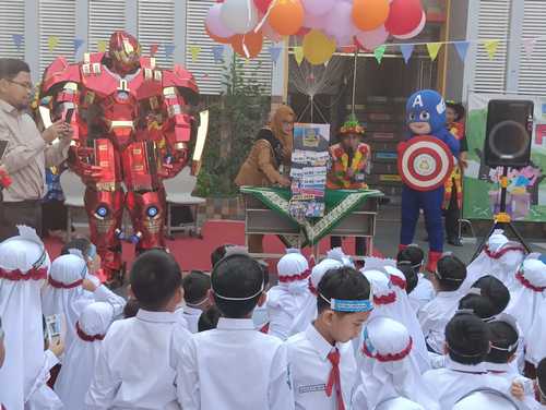 Sedangkan, dua tokoh karakter Captain America dan Robot Transformer sengaja dihadirkan, Ustadz Izzy menegaskan, untuk memberikan hiburan agar para siswa baru agar senang saat masuk sekolah di hari pertama. Dua tokoh Superhero ini sekaligus sebagai simbol pahlawan kebersihan.
