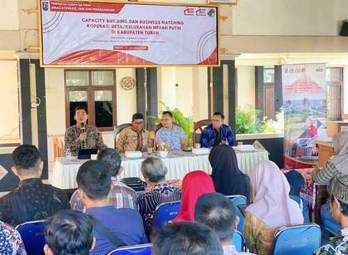 Dinas Koperasi, UKM dan Perdagangan (Diskopumdag) Kabupaten Tuban menggelar peningkatan kapasitas dan perencanaan bisnis bagi 328 Koperasi Desa/Kelurahan Merah Putih (KDMP) di seluruh Kabupaten Tuban. Tampak hadir dalam kegiatan itu anggota Luqmanul Hakim, Komisi III DPRD Tuban yang membidangi Keuangan dan Perekonomian, perwakilan dari masing-masing pengurus KDMP, pimpinan BRI selaku mitra resmi bank Himbara di Tuban, mitra BUMN yang mencakup PT SIG, Pertamina Patra Niaga, PT Pupuk Indonesia dan PT Pos Indonesia.