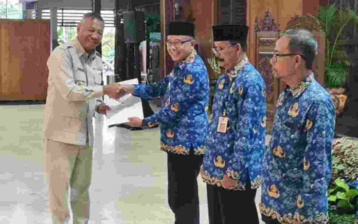Sebanyak 83 PNS di lingkup Pemkab Tulungagung menerima SK pensiun yang diserahkan langsung oleh Bupati Tulungagung, Gatut Sunu Wibowo, Rabu (18/2) sore. Mereka pensiun terhitung mulai tanggal 1 Maret dan 1 April 2026.