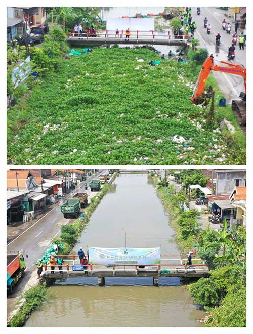 Sebagaimana diketahui dari jam 6.00 WIB hingga jam 11.00 WIB berton ton sampah telah dikumpulkan dari sungai tersebut. Melibatkan 14 kendaraan dumptruk untuk mengangkat sampah dari sungai tersebut seperti eceng gondok. Dan komunitas Sungai Watch juga mengangkut hampir 1 ton lebih sampah kering. [rac.gat]