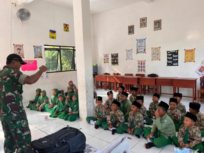 Dalam upaya menanamkan nilai-nilai positif dan menciptakan lingkungan belajar yang aman, Batikomsos Koramil 0814/11 Sumobito, Jombang, Serma Suprono memberikan penyuluhan dan wawasan tentang bahaya perundungan atau bullying kepada pelajar sekolah MI Al Hidayah, Dusun Grudo, Desa Madiopuro Kecamatan Sumobito, Kabupaten Jombang, Rabu (11/06).