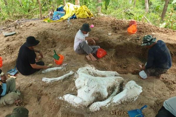 Ekskavasi fosil gajah purba di Titik, Rejoso, Nganjuk