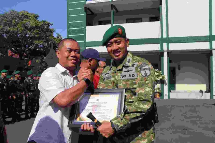 Dandim Hanny Galih saat memberikan penghargaan pada Wiwieko Dharmaidiningrum bersama lima wartawan lainnya, Selasa (17/3).