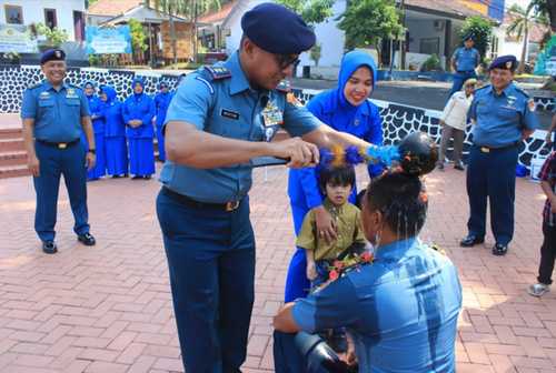 Prajurit dan Aparatur Sipil Negara (ASN) Pangkalan TNI Angkatan Laut (Lanal) Batuporon, mengekspresikan rasa syukur atas kenaikan pangkat satu tingkat lebih tinggi melalui upacara resmi yang digelar di Lapangan Apel Mako Lanal Batuporon, Jl Mawar Nomor 33, Batuporon, Bangkalan, Madura, Rabu (8/10).