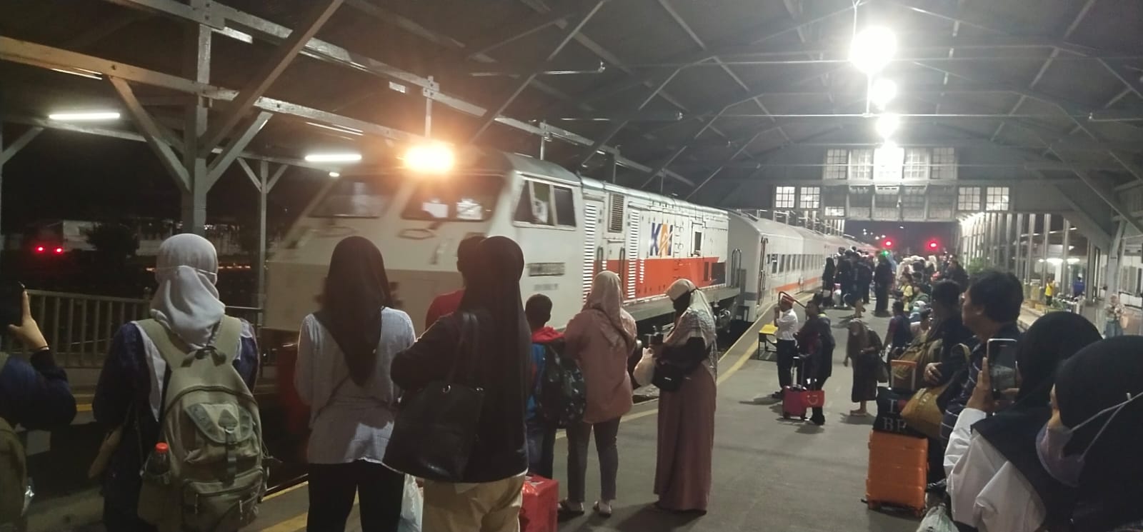 Aktivitas Stasiun KAI Bojonegoro arus balik lebaran 2025.