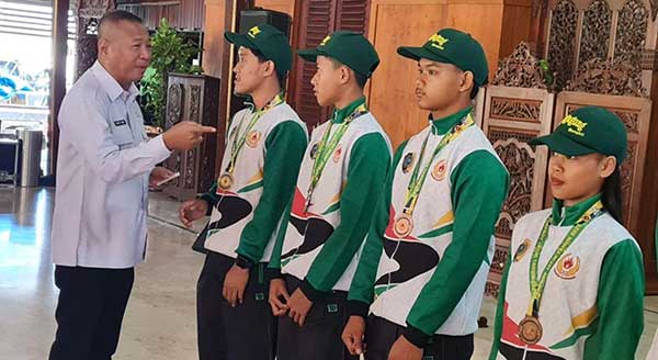 Bonus diberikan secara simbolis oleh Bupati Gatut Sunu di Pendopo Kongas Arum Kusumaning Bongso, Jumat (1/8). “Bonus sudah masuk rekening masing-masing atlet tanpa ada potongan. Saya jamin,” ujarnya.