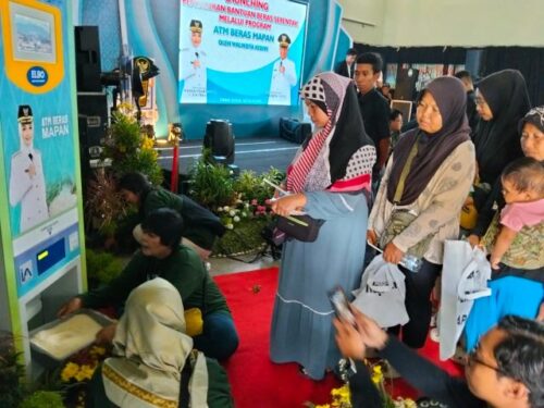 Launching Penyaluran Bantuan Beras Serentak lewat Program ATM Beras MAPAN, di Gedung Pertemuan Kelurahan Semampir Kota Kediri Senin (1/12).
