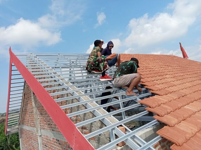 Sebagai upaya membangun kebersamaan antara Bintara Pembina Desa (Babinsa) dengan masyarakat, Babinsa Koramil 0814/06 Ploso, Jombang, Sertu Fathona melaksanakan kerja bakti bersama masyarakat dengan merenovasi bangunan sekolah MI Nizhamiyah yang berada di Dusun Patoman, Desa Kebonagung, Kecamatan Ploso, Kabupaten Jombang untuk memasang genteng, Rabu (07/05).