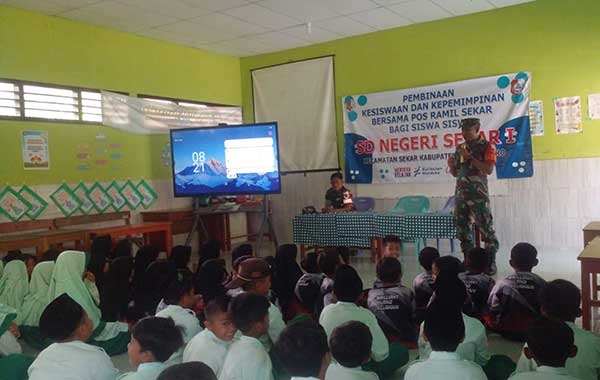 Bertempat dihalaman Sekolah Dasar Negeri (SDN) Sekar I Kecamatan Sekar Kabupaten Bojonegoro, sebanyak 70 siswa dan siswi dari kelas 1 sampai dengan kelas 6 dibekali materi Wawasan Kebangsaan (Wasbang) oleh para Babinsa, Rabu (19/11).
