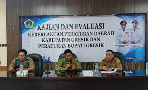 Kepala Bagian (Kabag) Hukum Setda Kabupaten Gresik, M. Rum Pramudya mengatakan, bahwa evaluasi tersebut dilakukan untuk melihat posisi Peraturan Daerah (Perda) dan Peraturan Bupati (Perbup).