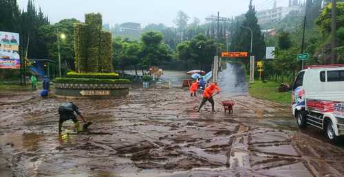 Diketahui, hujan deras terjadi di Kota Batu sejak Kamis (3/7) siang. Menjelang sore, terjadi banjit luapan sehingga menutup bundaran TR Selecta yang biasa sering dilalui kendaraan yang hendak menuju taman rekreasi ini. Petugas gabungan langsung turun dan melakukan pembersihan material lumpur agar lalu- lintas kembali normal dan wisatawan bisa pulang dengan aman.