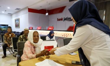 Pencairan Bansos PKH tahap 4 di Kantor Cabang Bank Jatim Kediri, Jumat (21/11).