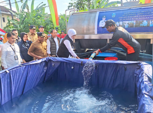 Pemerintah Provinsi (Pemprov) Jawa Timur, melalui BPBD Jatim terus mengenjot dropping air bersih guna mengantisipasi kekeringan di wilayah Jawa Timur. Bahkan, di tengah padatnya kunjungan kerja di Kabupaten Pacitan, Gubernur Jatim, Khofifah Indar Parawansa terus memperhatikan persoalan yang ada di masyarakat.