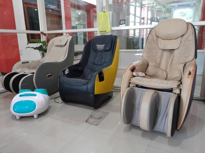Fasilitas Kursi pijat yang ada di layanan UTD PMI Sidoarjo.n alikusyanto/bhirawa.