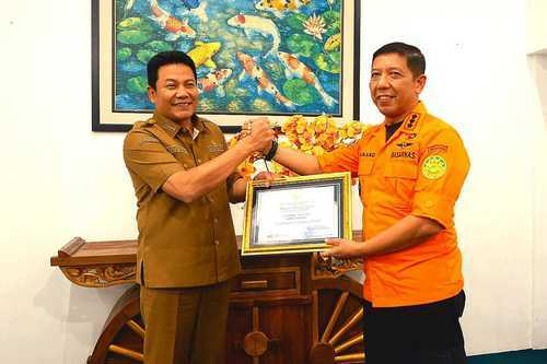 Penghargaan diserahkan Kepala Basarnas Surabaya, Nanang Sigit kepada Bupati Sidoarjo Subandi di Pendopo Delta Wibawa Sidoarjo.