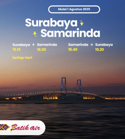 Batik Air mengumumkan pengoperasian rute terbaru yang menghubungkan Bandar Udara Internasional Juanda, Surabaya (SUB) dengan Bandar Udara Aji Pangeran Tumenggung Pranoto, Samarinda (AAP) di Kalimantan Timur. Kabar ini disampaikan Corporate Communications Strategic of Batik Air, Danang Mandala Prihantoro. Menurut Prhantoro pengoperasian rute ini menjadi salah satu langkah strategis Batik Air dalam memperkuat jaringan konektivitas antardaerah utama di Indonesia.