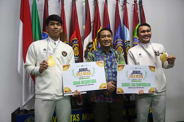 Universitas Muhammadiyah Surabaya (Umsura) berikan bonus pada dua mahasiswanya yang membawa Timnas Futsal Indonesia meraih medali emas SEA Games 2025 Thailand. Kedua mahasiswa tersebut ialah Samuel Eko Putro dan Israr Megantara, pemberian bonus merupakan bentuk komitmen Umsura mendukung mahasiswa berkarier sebagai atlet, Rabu, (24/12).