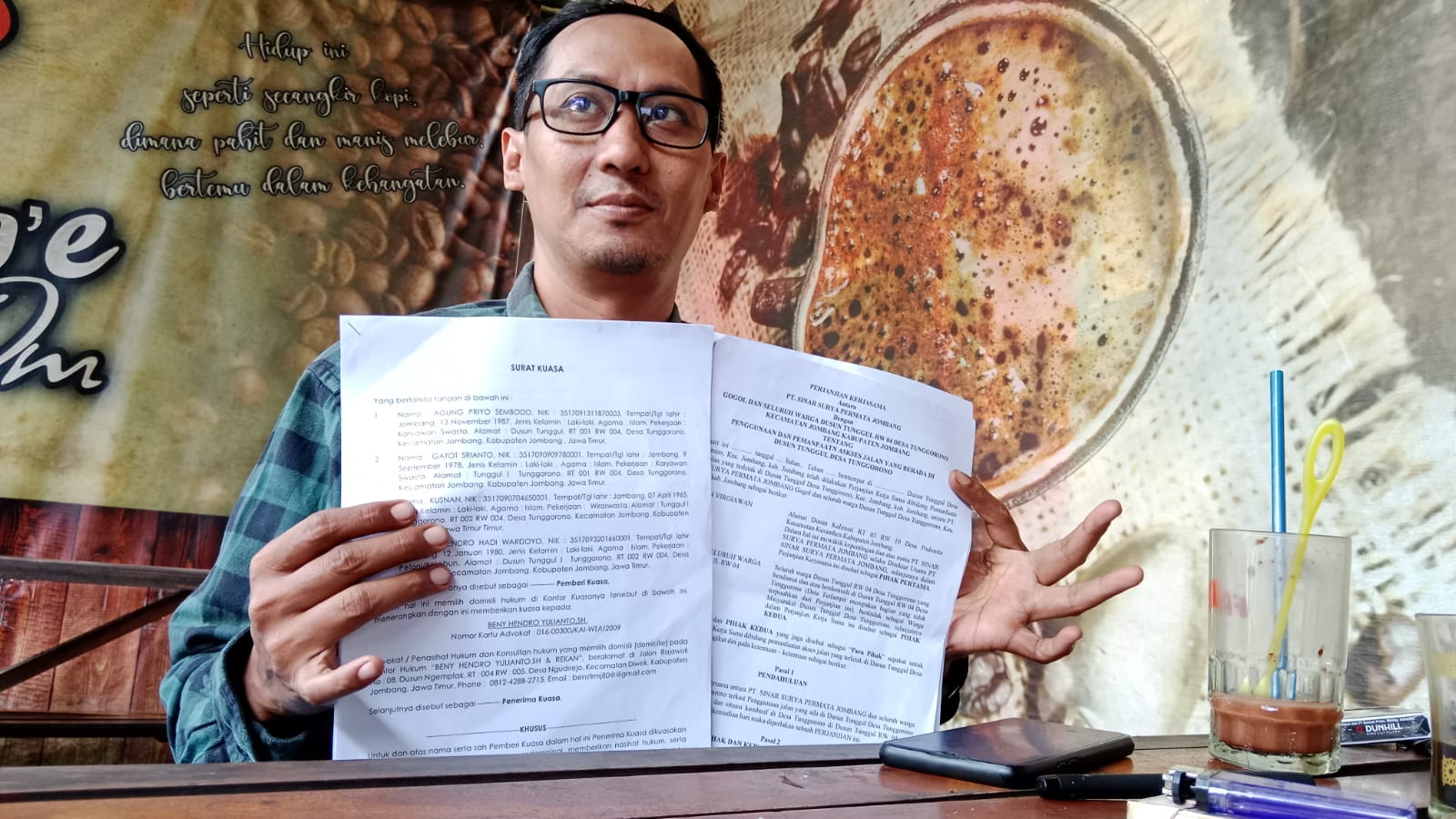 Menurutnya, berdasarkan keterangan dan bukti dari kliennya menerangkan bahwa untuk nilai atau nominal pembagian kompensasi dari PT Sinar Surya Permata Jombang sudah disepakati oleh semua warga yang terdampak maupun yang tidak terdampak.