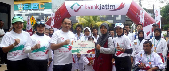PT Bank Pembangunan Daerah Jawa Timur Tbk. (Bank Jatim) kembali menggelar Jatimers Run To Care. Tahun ini, event berlari sambil berdonasi tersebut memilih Kota Madiun sebagai lokasi pertama terselenggaranya acara, Minggu (15/12).