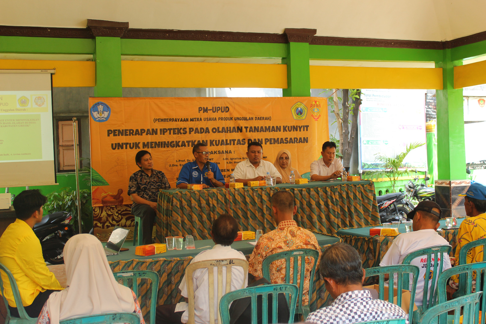 Pembukaan kegiatan PM-UPUD di desa Kesamben Wetan Kec. Driyorejo Kabupaten Gresik yang dihadiri oleh Tim pengusul program PM-UPUD yang diketuai oleh Ketua LPPM UBHARA Prof. Dr. Ir. Saidah, Kepala Desa Kesamben Wetan, Kepala Dinas Pertanian tingkat kecamatan , wakil dari Dinas Pertanian kabupaten serta Mitra I dan II beserta anggotanya.