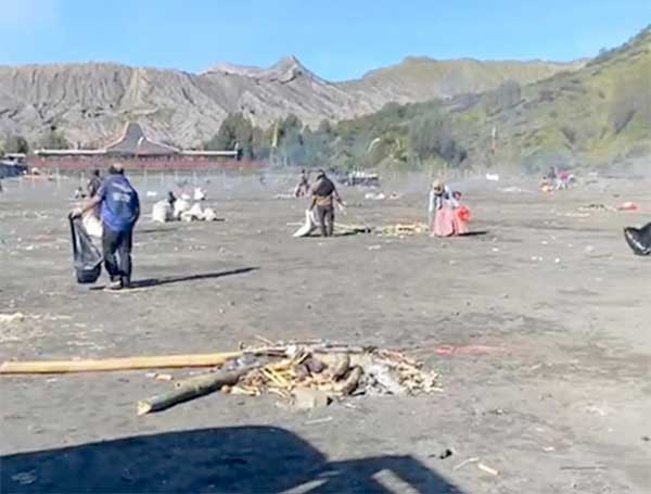 “Fokus pembersihan dilakukan dengan cara menyisir titik-titik yang menjadi lokasi konsentrasi kegiatan selama upacara, terutama di sekitar Pura Luhur Poten hingga kawah Bromo,” ujar Gondo Andono, anggota Forum Sahabat Gunung.
