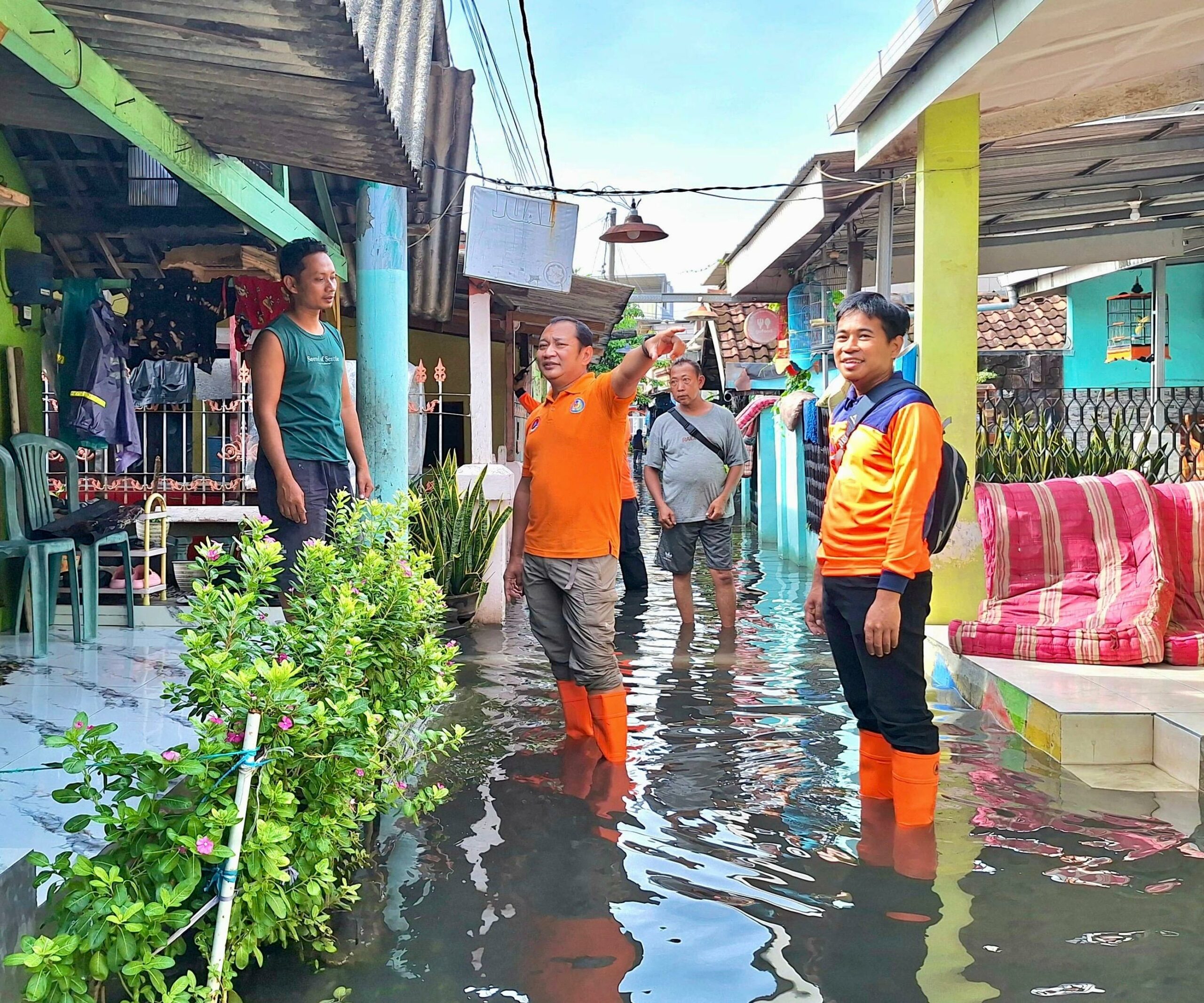 Kalaksa BPBD Jatim, Gatot Soebroto meninjau langsung kondisi banjir dan meminta Tim Reaksi Cepat (TRC) BPBD Jatim untuk melakukan evakuasi warga rentan yang terdampak banjir di Waru Sidoarjo, Kamis (26/12). Hingga Rabu (25/12) malam, sedikitnya terdapat 7 titik pengungsian di beberapa desa di Kecamatan Waru.