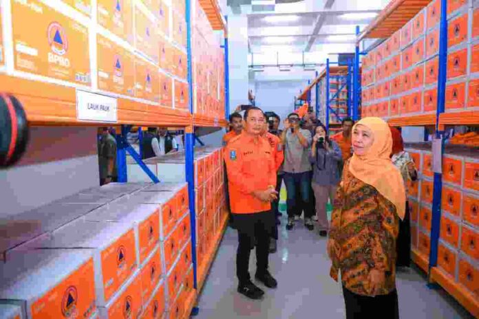 Gubernur Jawa Timur Khofifah Indar Parawansa meresmikan Gedung Gerha Majapahit dan GOR BPBD Jatim di Sidoarjo, Kamis (9/4). Pembangunan ini menjadi langkah strategis mewujudkan tata kelola logistik bencana yang modern, tertib, dan akuntabel.