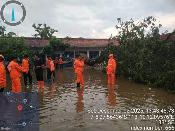 “Kejadiannya Sekitar pukul 12.45 WIB, Selasa (2/12), BPBD Sampang menerima laporan dari warga terkait pohon tumbang yang menutup akses jalan di wilayah Kecamatan Jrengik. Selain itu, pohon tumbang juga dilaporkan menimpa atap rumah warga dan ruang kelas 2 serta kelas 3 di UPTD SDN Asemraja 1, Desa Asemraja, Kecamatan Jrengik, Kabupaten Sampang.