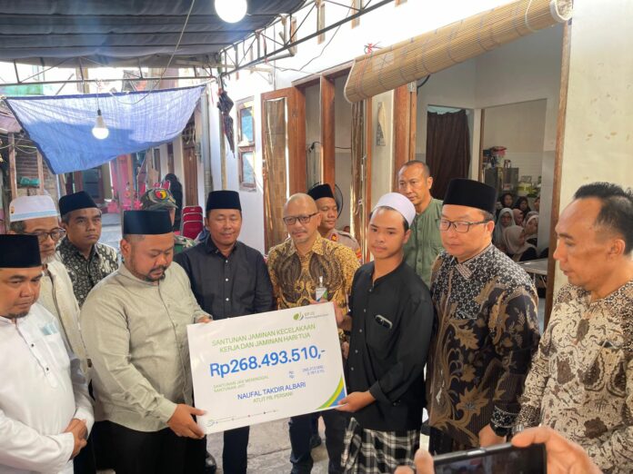 BPJS Ketenagakerjaan, menyalurkan bantuan kepada keluarga almarhum Naufal Takdir Albari. Menyatuni jaminan Kecelakaan Kerja, dan Jaminan hari tua sebesarRp 268,49 juta.