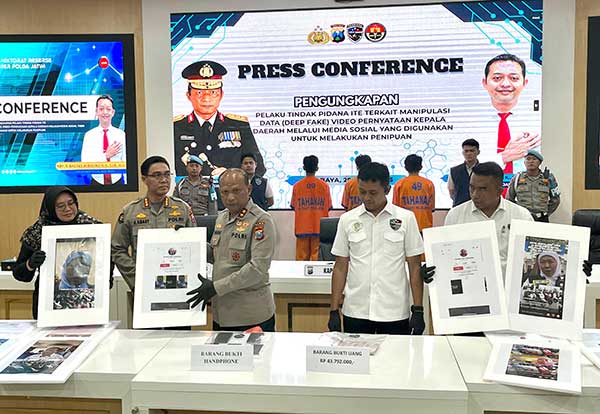 “Ketiga pelaku ini merupakan warga Pangandaran, Jawa Barat. Para pelaku ini melakukan penipuan menggunakan video Gubernur Jawa Timur, Khofifah Indar Parawansa dengan menggunakan teknologi Artificial Intelligence (AI),” kata Kapolda Jatim, Irjen Pol Nanang Avianto, Senin (28/4).