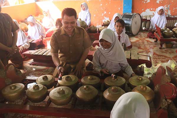 Dalam kunjungannya, Bupati menyempatkan diri menyaksikan aktivitas belajar siswa. Mulai dari pelajaran tambahan Matematika hingga seni Karawitan yang dimainkan oleh siswa kelas 5.