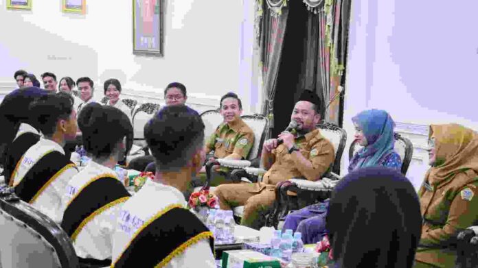 Bupati Gresik Fandi Akhmad Yani memberikan pembekalan kepada finalis Duta Generasi Berencana (Genre) di Rumah Dinas Bupati Gresik, Selasa (31/3/2026). Kegiatan tersebut turut dihadiri Kepala Dinas Keluarga Berencana, Pemberdayaan Perempuan, dan Perlindungan Anak (KBPPPA) Gresik, Titik Ernawati, serta Ketua Tim Penggerak PKK Gresik Nurul Haromaini Ali Fandi Akhmad Yani.