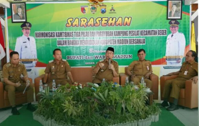 “Untuk itu, kami meminta agar kegiatan poskamling digiatkan kembali dan dapat dikembangkan melalui kegiatan pembinaan masyarakat,”kata Bupati Madiun, H. Hari Wuryanto saat menghadiri Sarasehan Harmonisasi Kamtibmas Tiga Pilar dan Paguyuban Kampung Pesilat Kecamatan Geger di Pendopo Kecamatan Geger, Selasa (7/4).