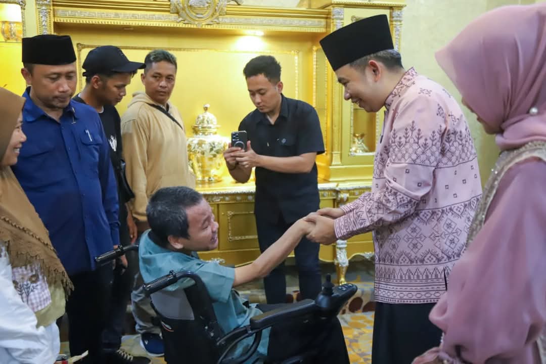 Antrean warga tampak rapi sejak pagi. Mereka memasuki pendapa secara bergelombang, lalu menuju ruang tengah untuk bersalaman dan berfoto bersama Bupati dan keluarga.