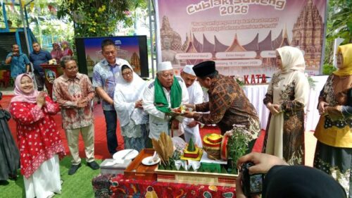 Bupati Warsubi saat merem Bait Kata School dan membuka Festival Cublak Suweng 2026, Jumat (16/01). Foto: arif yulianto/bhirawa.