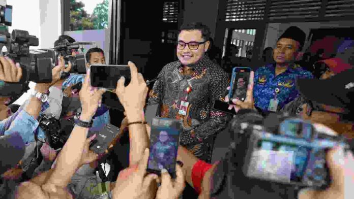 Bupati Kediri Hanindhito Himawan Pramana menjelaskan kebijakan WFA selama masa Lebaran 2026, Selasa (17/3).