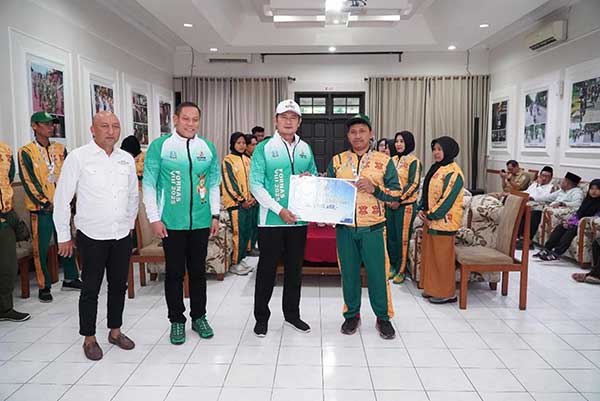 Bupati Lamongan Yuhronur Efendi melepas kontingen Komite Olahraga Rekreasi Masyarakat Indonesia (KORMI) ke Festival Olahraga Rekreasi Nasional (Fornas) VIII Tahun 2025 di Nusa Tenggara Barat.