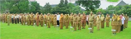 Apel pagi, Senin (8/9) diawali pembacaan Panca Prasetya KORPRI dan ditirukan oleh seluruh peserta apel. yang diikuti oleh Sekda Ir. Tontro Pahlawanto, para staf ahli bupati, asisten sekda, pimpinan OPD dan para staf.
