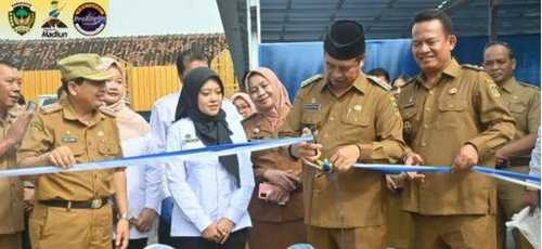 Bersamaan Monitoring Terpadu Bulan Timbang Serentak Agustus, Bupati Madiun H. Hari Wuryanto, S.H., M.Ak didampingi Wakil Bupati Madiun dr. Purnomo Hadi melaunching SPPG (Satuan Pelayanan Pemenuhan Gizi) untuk mendukung program Makan Bergizi Gratis (MBG) di Desa Sidorejo, Kec. Kebonsari, Kab. Madiun ditandai pengguntingan pita dan melepas armada pengangkut MBG, Selasa (5/8/2025)