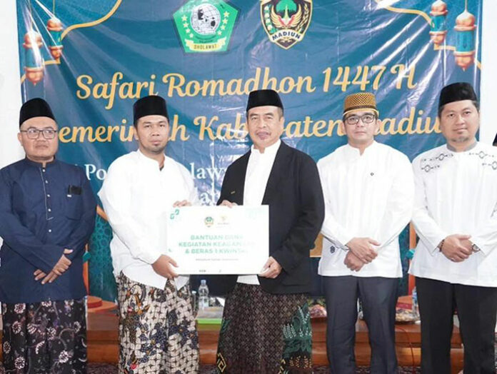 Pemkab Madiun menggelar kegiatan Safari Ramadan 1447 Hijriah di Pondok Pesantren Sholawat, Dusun Klubuk, Desa Kedungrejo, Kecamatan Pilangkenceng, Rabu malam (25/2). Kegiatan ini menjadi ajang silaturahmi antara ulama dan umara sekaligus penguatan peran pesantren dalam pembangunan karakter generasi muda.
