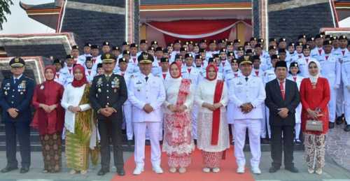 Sebagai bentuk rasa syukur, maka Bupati, Wakil Bupati Madiun didampingi istri, Ketua DPRD Kab. Madiun, Sekda Ir. Tontro Pahlawanto, forkopimda, seluruh anggota Paskibraka pada malam harinya menghadiri acara syukuran di Pendopo Ronggo Djoemeno, Caruban, Kab. Madiun. [dar.dre]