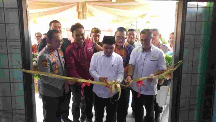 Tampak Bupati Mojokerto, Albarra bersama Wawali Cak Sandi Sekdakot dan Kapolres serta unsur Muspida 2 Pemda saat menggunting pita tanda dibukanya MC Ruang Jurnalis Mojokerto Raya.